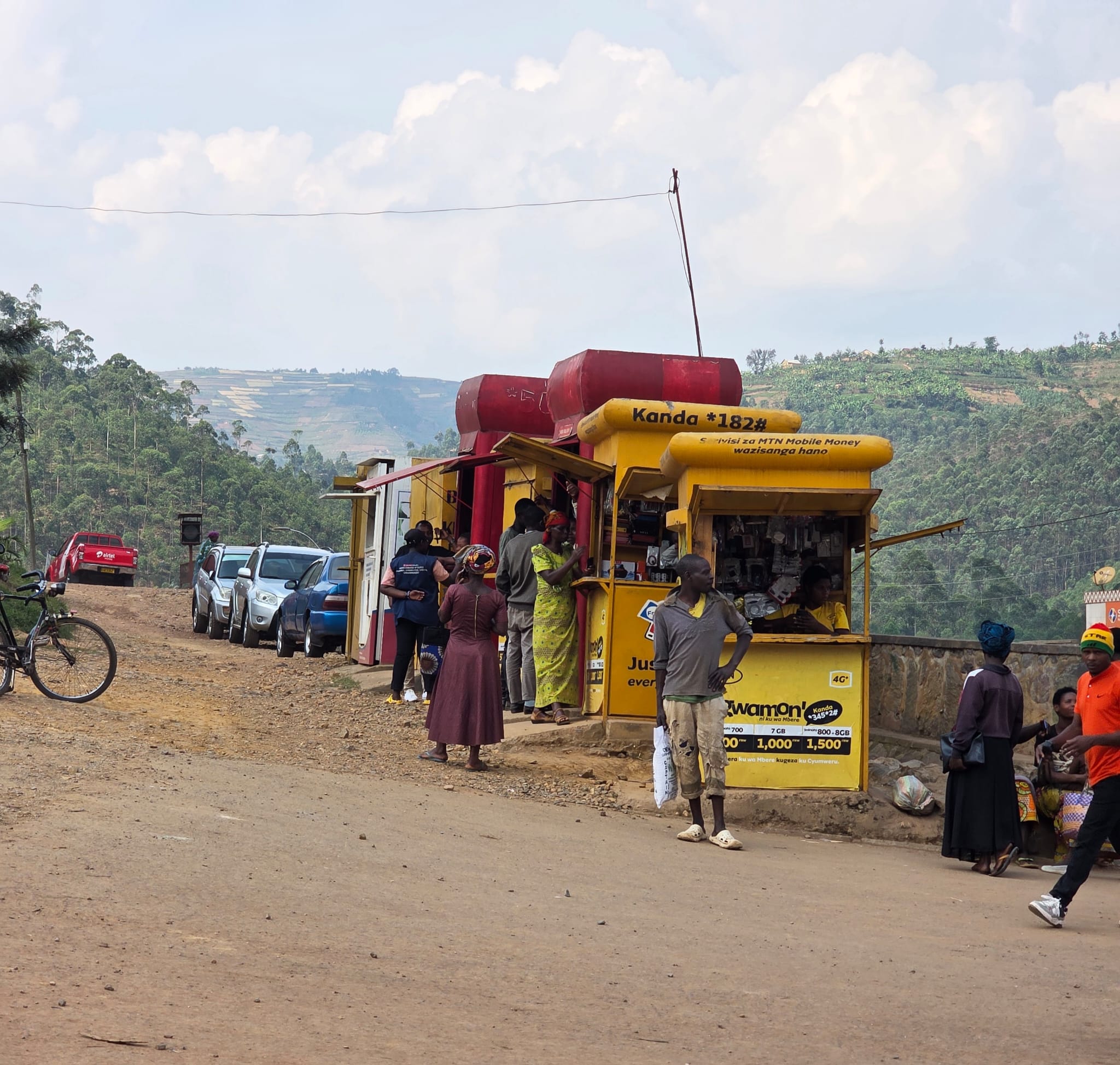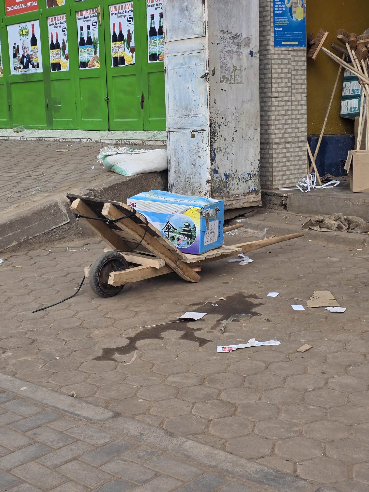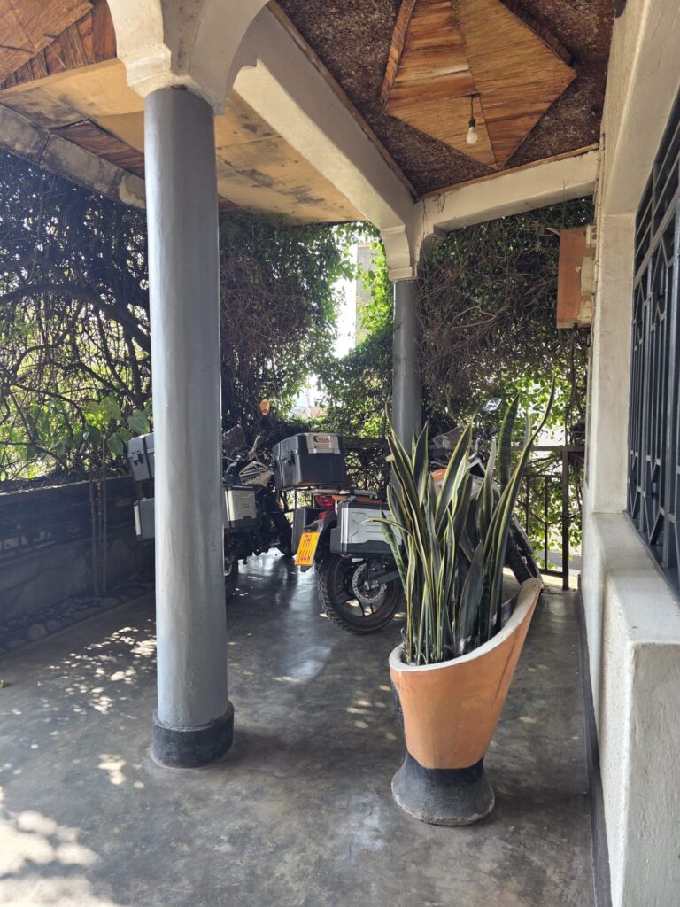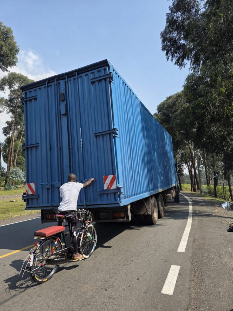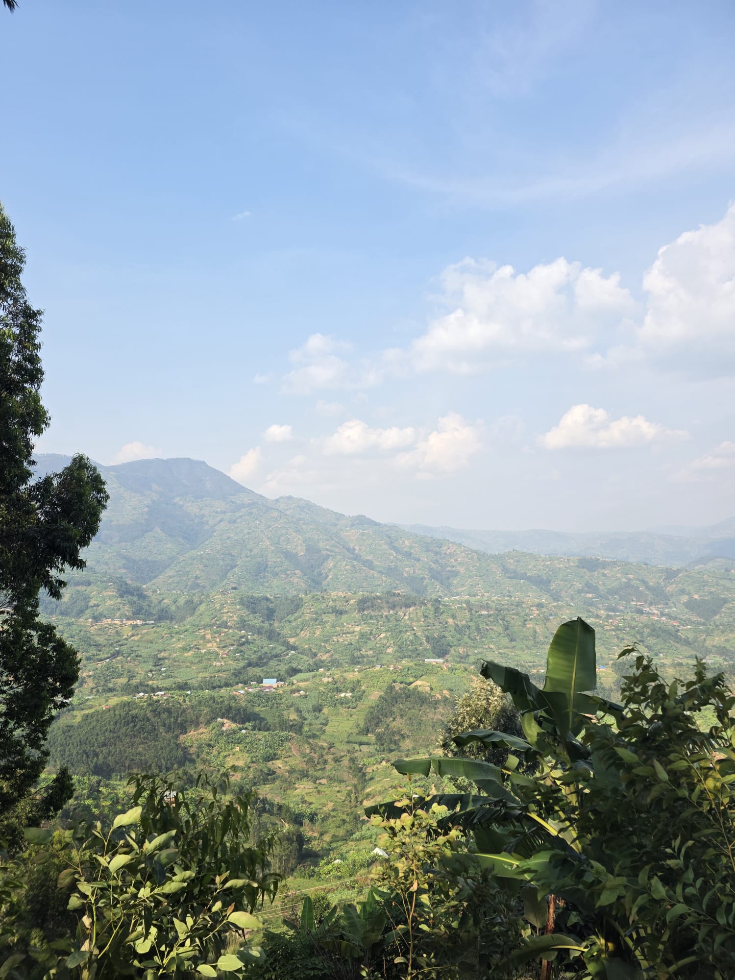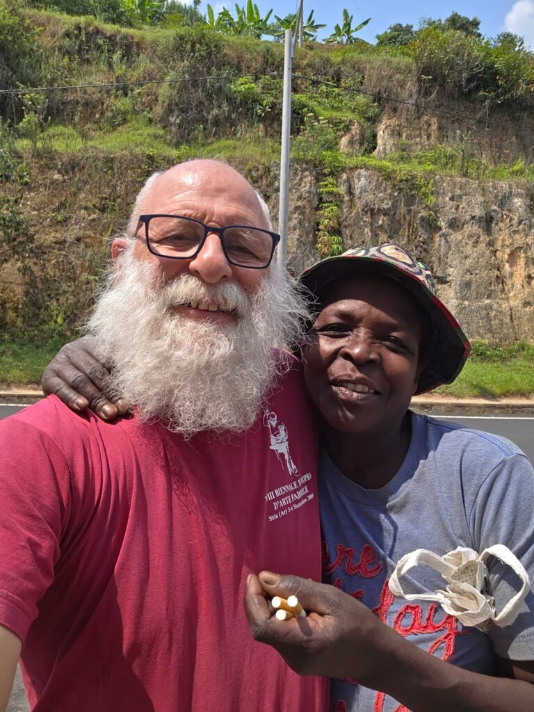 ברואנדה אסור שימוש בשקיות ניילון (איכות סביבה), אך יש שימוש מצוין לנילון שכן מסתובב פה- כדורגל איכותי! ממשיכים בדרך. כשמתקרבים לעיר הגדולה התנועה נעשית צפופה יותר, וכל משאית גורמת לפקק תנועה. אוטובוס שעולה באש סוגר את הכביש- אנחנו בעקבות האופנועים המקומיים מצמצמים ועוברים לראש הפקק, יוצאים עם הנחיל ומשאירים את המכוניות מאחור. הכבישים צרים- יש 2 נתיבים, ושוליים שמאפשרים תנועה להולכי רגל ואופניים, כשמכונית נתקעת- אין לאן להזיז, והכביש נשאר עם נתיב אחד. אף אחד לא מתעצבן/צועק/ מקלל- מקבלים הכל בשלווה. קצב אפריקה! עצירה לקפה במקום של עזיזי. זהו מרכז לאמנות מקומית שהוקם על ידי אמריקאי- רואים את זה בתצוגה המאורגנת ובשילוט שקורא לקנות, לתרום ולעזור למקומיים. השומרת בפתח רוצה לנקות לנו את האופנועים- אני מוותרת בחיוך- זה לא יעזור להם..