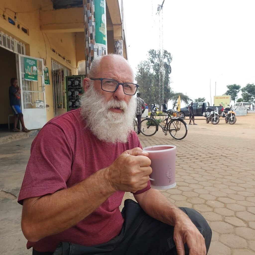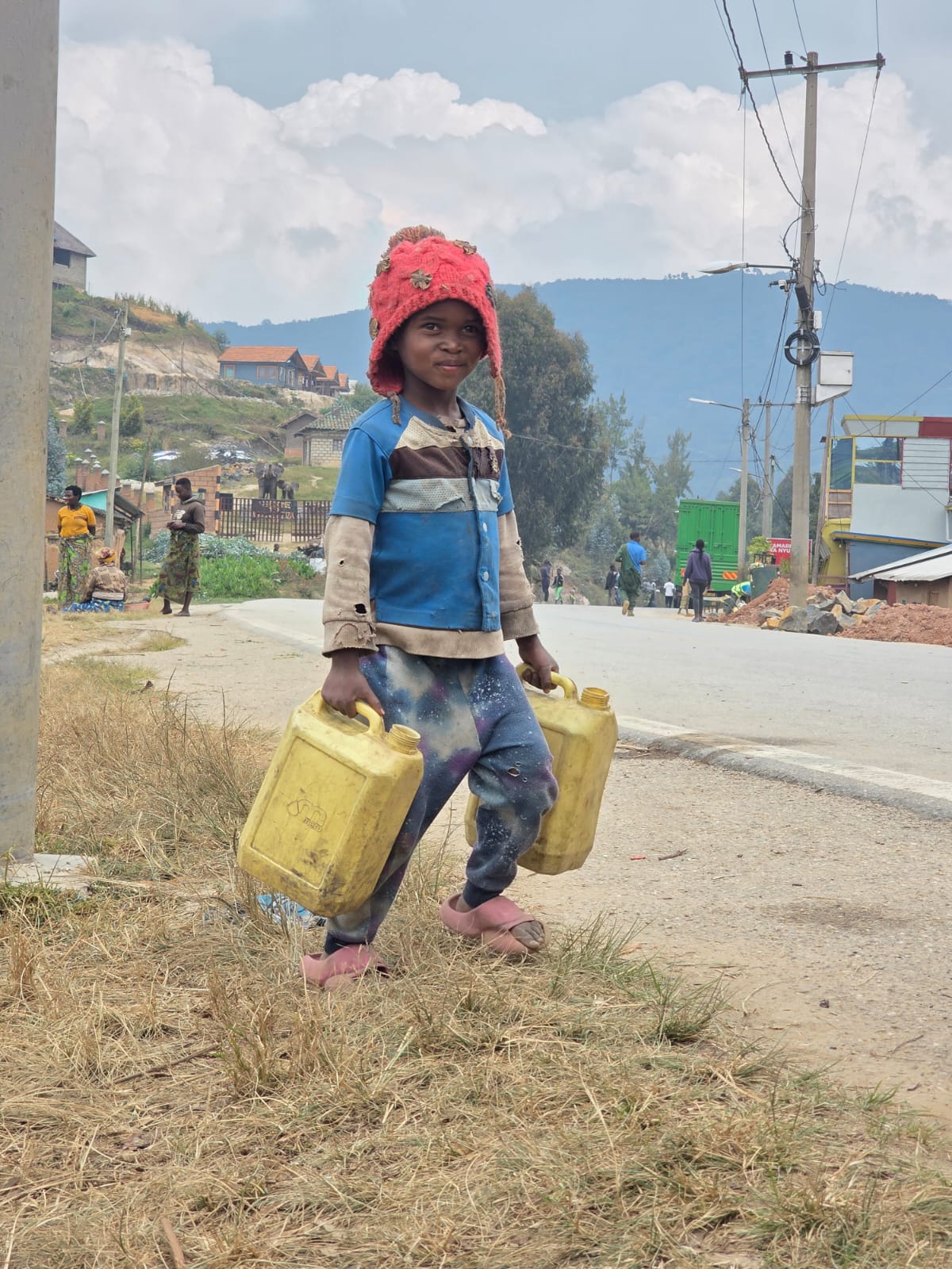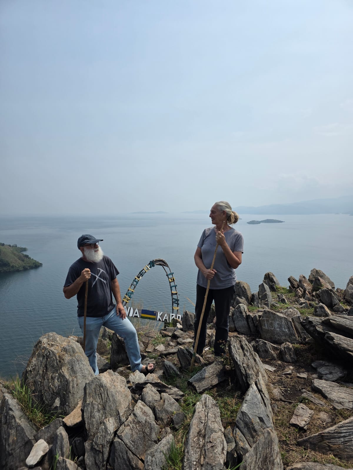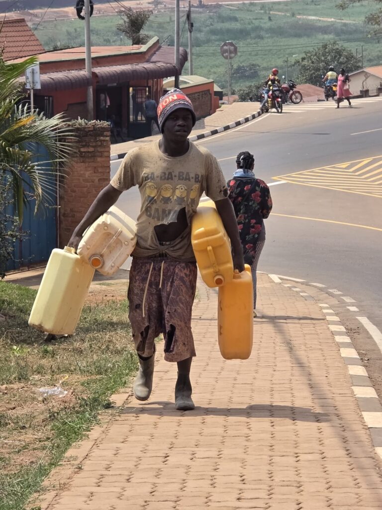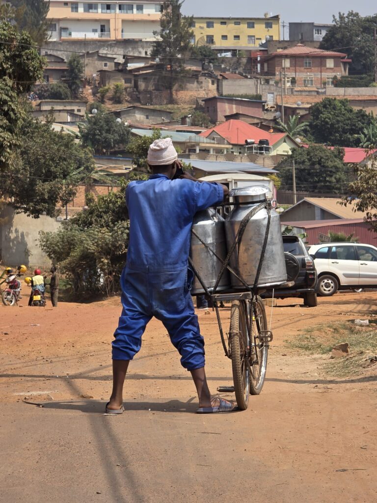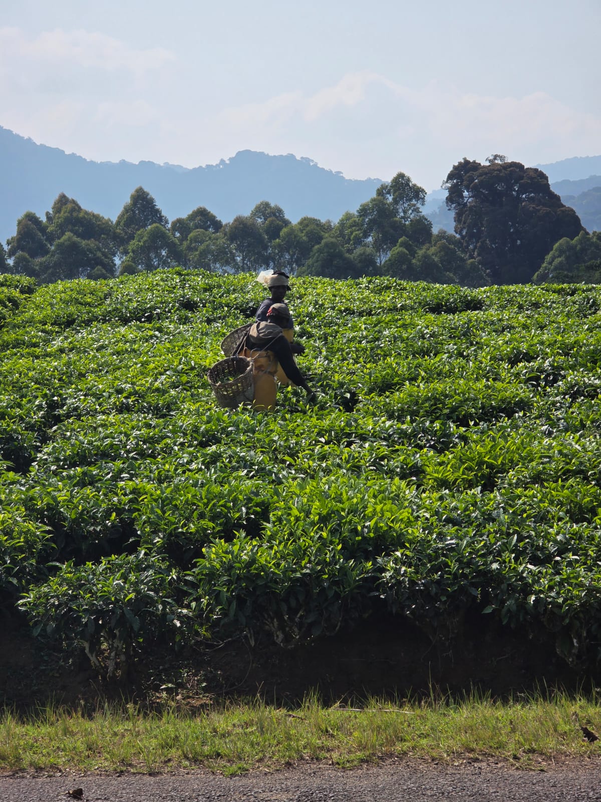ברואנדה אסור שימוש בשקיות ניילון (איכות סביבה), אך יש שימוש מצוין לנילון שכן מסתובב פה- כדורגל איכותי! ממשיכים בדרך. כשמתקרבים לעיר הגדולה התנועה נעשית צפופה יותר, וכל משאית גורמת לפקק תנועה. אוטובוס שעולה באש סוגר את הכביש- אנחנו בעקבות האופנועים המקומיים מצמצמים ועוברים לראש הפקק, יוצאים עם הנחיל ומשאירים את המכוניות מאחור. הכבישים צרים- יש 2 נתיבים, ושוליים שמאפשרים תנועה להולכי רגל ואופניים, כשמכונית נתקעת- אין לאן להזיז, והכביש נשאר עם נתיב אחד. אף אחד לא מתעצבן/צועק/ מקלל- מקבלים הכל בשלווה. קצב אפריקה! עצירה לקפה במקום של עזיזי. זהו מרכז לאמנות מקומית שהוקם על ידי אמריקאי- רואים את זה בתצוגה המאורגנת ובשילוט שקורא לקנות, לתרום ולעזור למקומיים. השומרת בפתח רוצה לנקות לנו את האופנועים- אני מוותרת בחיוך- זה לא יעזור להם..