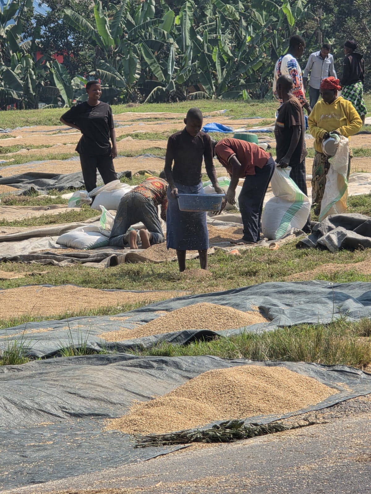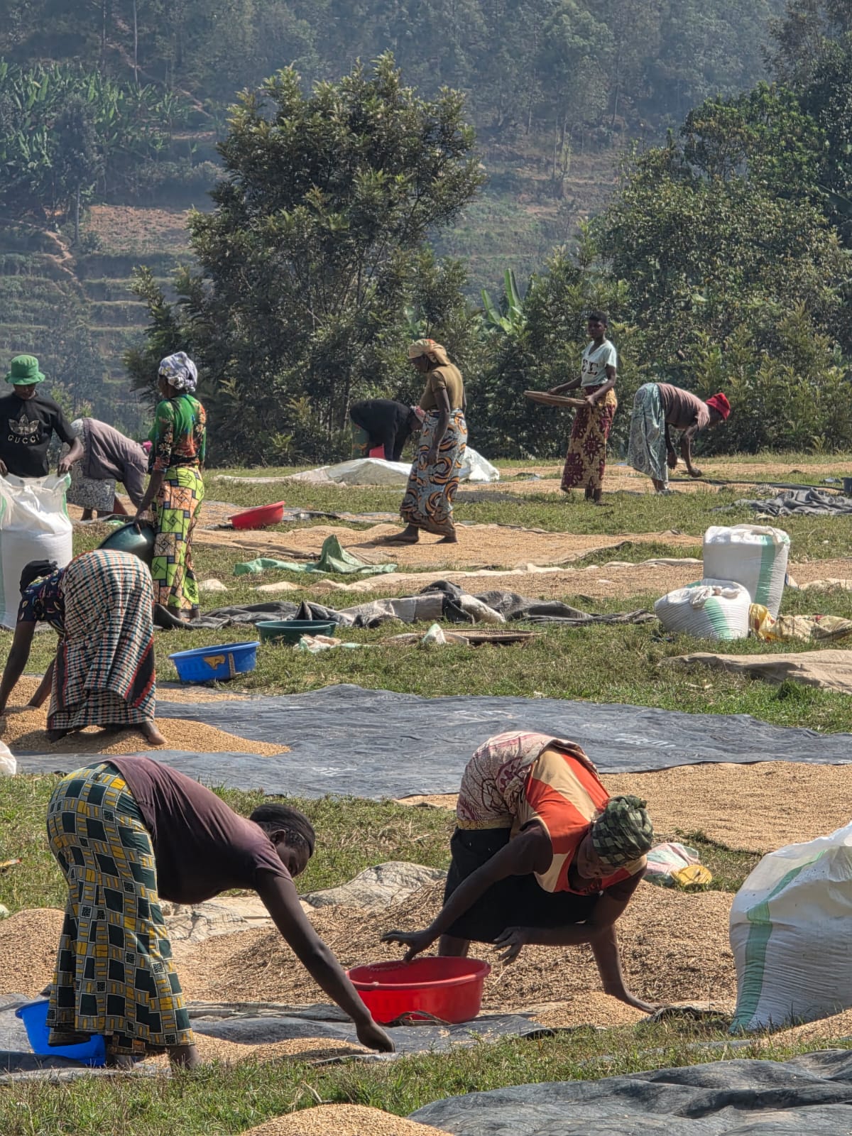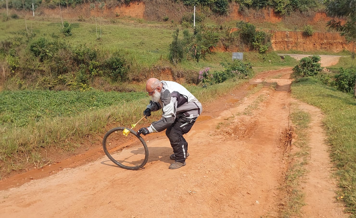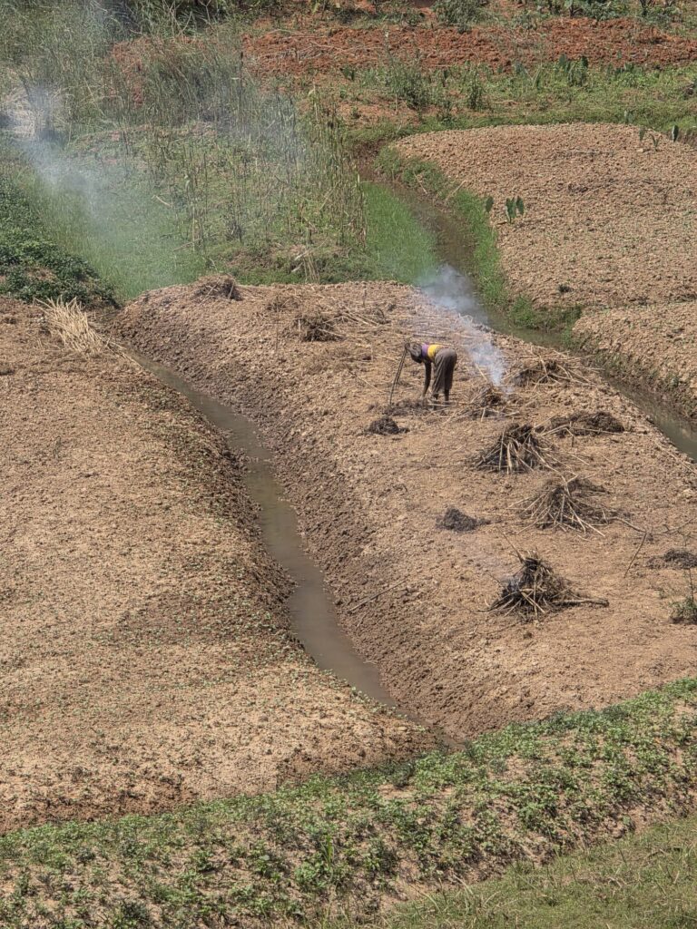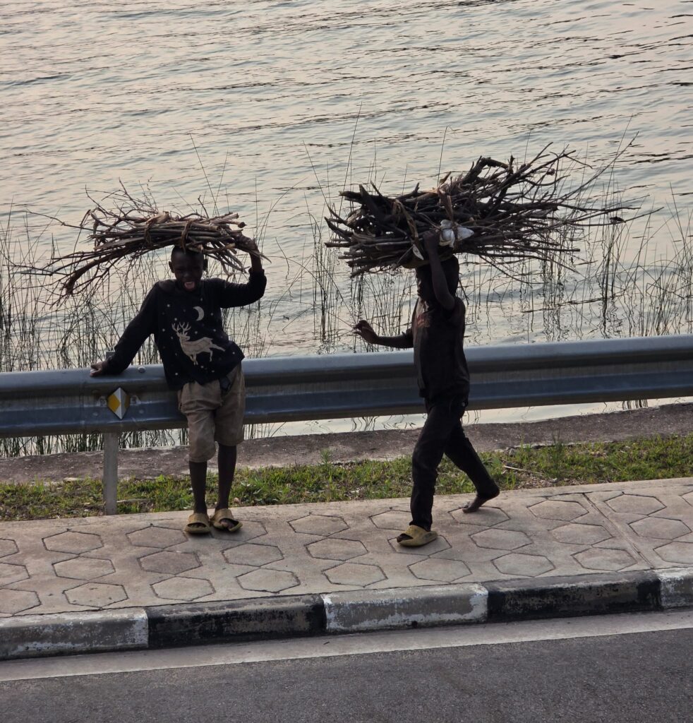 בוקר סגרירי- שוב- השמש יוצאת מהעננים מאוחר יותר, ומזג האויר תמיד נהדר לרכיבה וטיול. חשבנו להמשיך מכאן למקום של רון וייס על שפת אגם בוגסרה. המקום נראה מקסים בתמונות, אמנם דרך עפר של כמה קילומטרים, קטן עלינו… הזדמנות לנוח יומיים במקום שלו. בדיקה נוספת- אין ווי פי. לא נעמוד בזה. מוותרים בצער. הרכיבה כרגיל נעימה- כבישים טובים, מזג אויר נהדר, והתנועה איטית כמו שאני אוהבת! בצד הדרך קולטים 'מפעל לבנים'. גדי עוצר לצלם, כמובן שמיד מיהו עולה בריצה. גדי שואל אם אפשר להתקרב ולהכנס. בטח! יורדים מהכביש לדרך קטנה שמובילה למקום, איך שאנחנו מחנים את האופנועים כבר יש עשרה ילדים מסביבנו. הלבוש שלהם מרופט, אבל לא נראים מסכנים. שלשה קטנים מתקרבים עם גלגל ומוט- משחק מקובל שאצלנו נעלם מהנוף. גדי מבקש רשות לנסות. כולנו מתגלגלים מצחוק לראות את הכשלונות שלו.. אנחנו נכנסים לראות את העבודה- קודם חופרים ערימת בוץ, אחר כך יש את אלו שמכינים את הבלוקים בתבנית ומסדרים ליבוש. משם עוברים למגדל ענק של בלוקים, מסודר כמו פירמידה קטומה. למטה יש פתחים שלתוכם דוחפים שברי גזעים ומבעירים. האש דולקת כמה ימים, ומשאירים עוד כמה ימים להתקררות. פועל יכול לעשות כ 400-600 לבנים ביום. השכר של פועל פשוט- 2500 פרנק רואנדי ליום. זה פחות משני דולר. ומי שיש לו עבודה שמח מאד- באזורים החקלאיים לא תמיד יש. למרות שקצב העבודה שלהם יכול להוציא מהדעת את מי שבא מתרבות מערבית, הם עובדים קשה מאד.