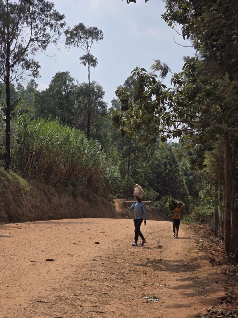 רואנדה נגמרת לנו מהר משחשבנו… היעד היום הוא מוזיאון ארמון המלך. ניאנזה היתה מקום מושבו של המלך עד קץ המלוכה ברואנדה, והיום יש במקום שחזור של הבקתות ומוזיאון. אבל קודם צריך להגיע! גוגל מציע לנו דרך שתמשך שעה וחצי, נשמע בסדר. הדרך החלופית הרבה יותר ארוכה ועושה סיבוב גדול. יוצאים. אופס.. אחרי כמה דקות נסיעה נגמר האספלט. לא נורא- הדרך רחבה ומסודרת- נראה שהכביש הסלול יגיע בקרוב. מסביב ירוק נקי ומקסים כמו תמיד. כפרים קטנים, חקלאות, אופניים. רק שהדרך מתחלפת ( זמנית?) והופכת להיות שביל קצת משובש. לא נורא. תכף יתחלף שוב. תכף. מתי זה תכף?? גדי מאושר- אין בעיה- רק תשחררי את הידים, הילוך שני בלי הרבה גז, ותסתכלי קדימה לבחור איך לנסוע- ממש קלי קלות! אם בכביש אני רוכבת קדימה כדי שהמהירות תהיה בשליטה שלי, בשטח גדי מוביל- נותן הוראות ועצות, ואני משתרכת מאחריו. נפילה קטנה טפשית למדי, ממשיכים. פתאם נראה שחזרנו לדרך הרחבה והטובה, אבל זה לא לאורך זמן, ושוב אנחנו בשביל לא נחמד. זה לא שטח קשה עם אתגרים בלתי אפשריים, אבל מצריך ממני ריכוז ומאמץ קצת יותר מדי. הנשימה כבדה, כולי מכוסה זיעה, אבל הידיים חופשיות כמו שהמדריך מבקש, ומדי פעם אפילו מצליחה לצחוק מתחת לקסדה. שתי עצירות קצרות למנוחה- אחת מהן כשעדר של ילדים רעשניים רודף אחרינו- רק שלא ינסו להחזיק את האופנוע כשעשוע… בסוף- אחרי שעתיים וחצי בלתי נגמרות- אנחנו עולים על הכביש- עוד 3 דקות נסיעה ואנחנו בחניה של הארמון. מצבנו הפיזי הפוך- גדי מחייך ומרוצה עד הגג, אני בקריסה, החולצה רטובה לגמרי, חייבת לשבת!