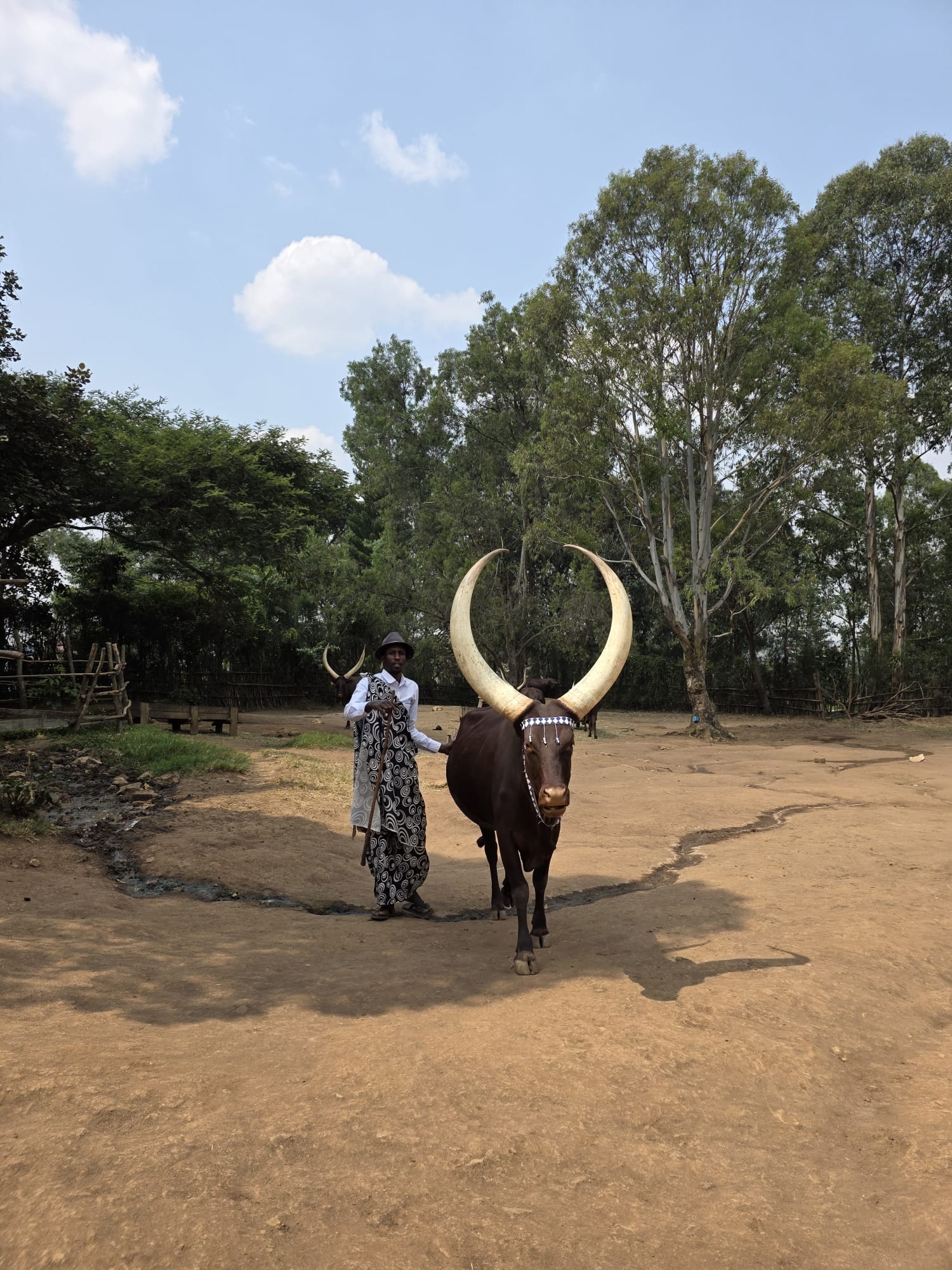 בכניסה יש מקום גדול לשבת עם קפה חזק, חנות מזכרות, שרותים- הכל במבנים עם גג מסורתי מקש בנוי להפליא. לוקח לי כמעט שעה לחזור לעצמי. יוצאים לסיור במוזיאון- מצמידים לנו מדריכה (הפעם במחיר הגיוני..) ואנחנו הולכים לראות 3 בקתות משוחזרות- זו ששימשה למגורי המלך, בקתת החלב ובקתת הבירה. הסיפורים מעניינים והמדריכה מצויידת גם באנגלית טובה וגם בחוש הומור… אחרי הביקור בבקתות הולכים לחצר הפרות הקדושות. מרשימות ביותר! הן שימשו רק לחלב, והיו נקברות בסוף חייהן. היום מטפחים פה עדר קטן מאותו זן. התחנה השלישית היא ביתו של המלך המודרני יותר, נבנה בשנות השלושים של המאה העשרים והוא בנוי בצורה המסורתית- חדרים שלכל אחד מהם יש כניסה מהחזית וכניסה נוספת מהחצר הפנימית. יש בארמון מעט רהיטים וחפצים מקוריים- חלק גדול נבזז בתקופה של רצח העם. היה שווה עצירה, נשארים לארוחת צהריים וממשיכים אל תוך העיר- ניאנזה גדולה, מטופחת ומודרנית במידה. מלון קטן עם ארוחת ערב טעימה. הכל טוב!