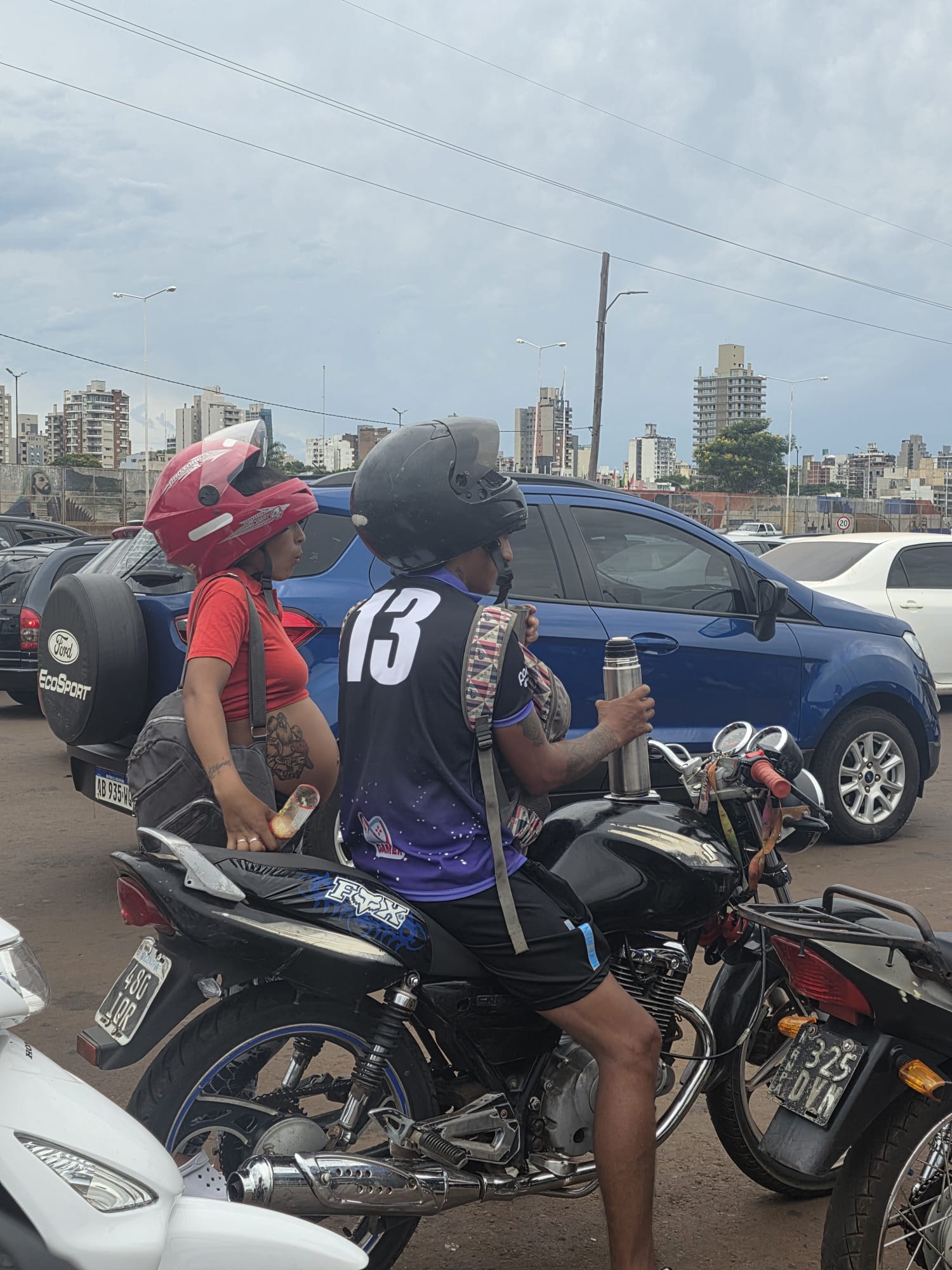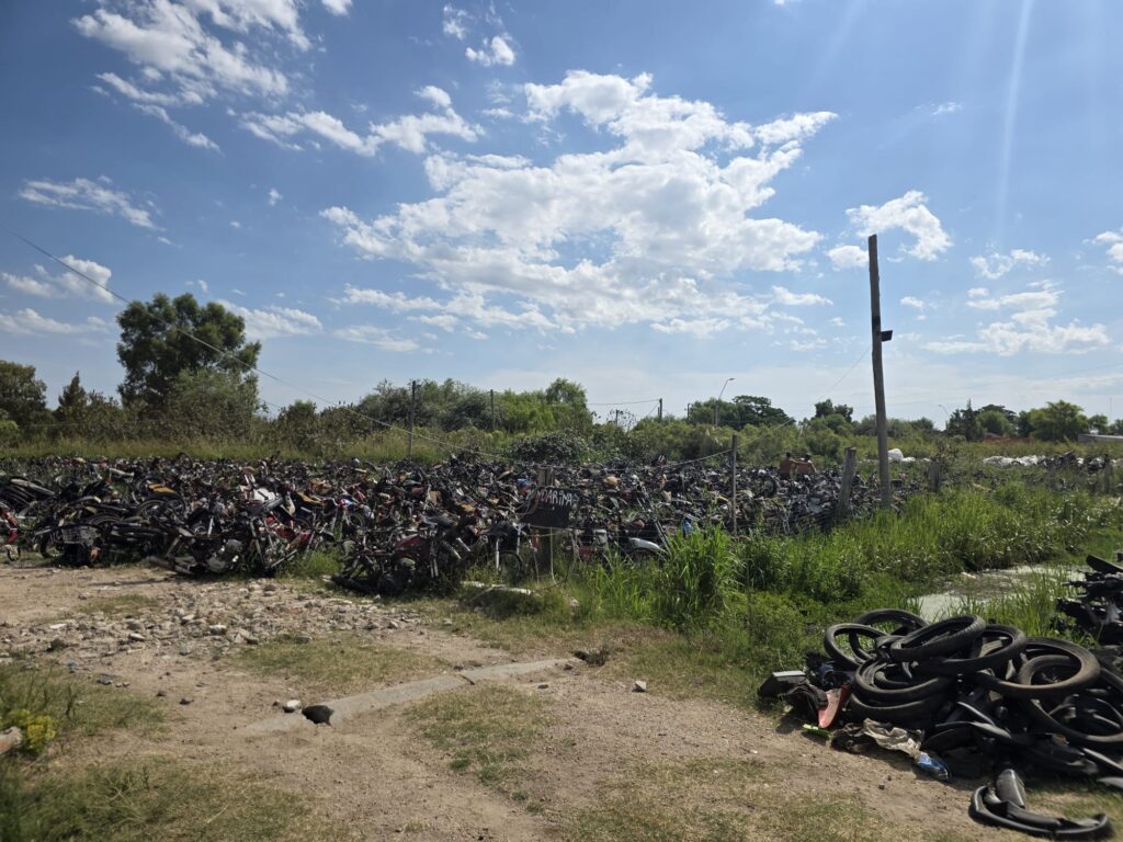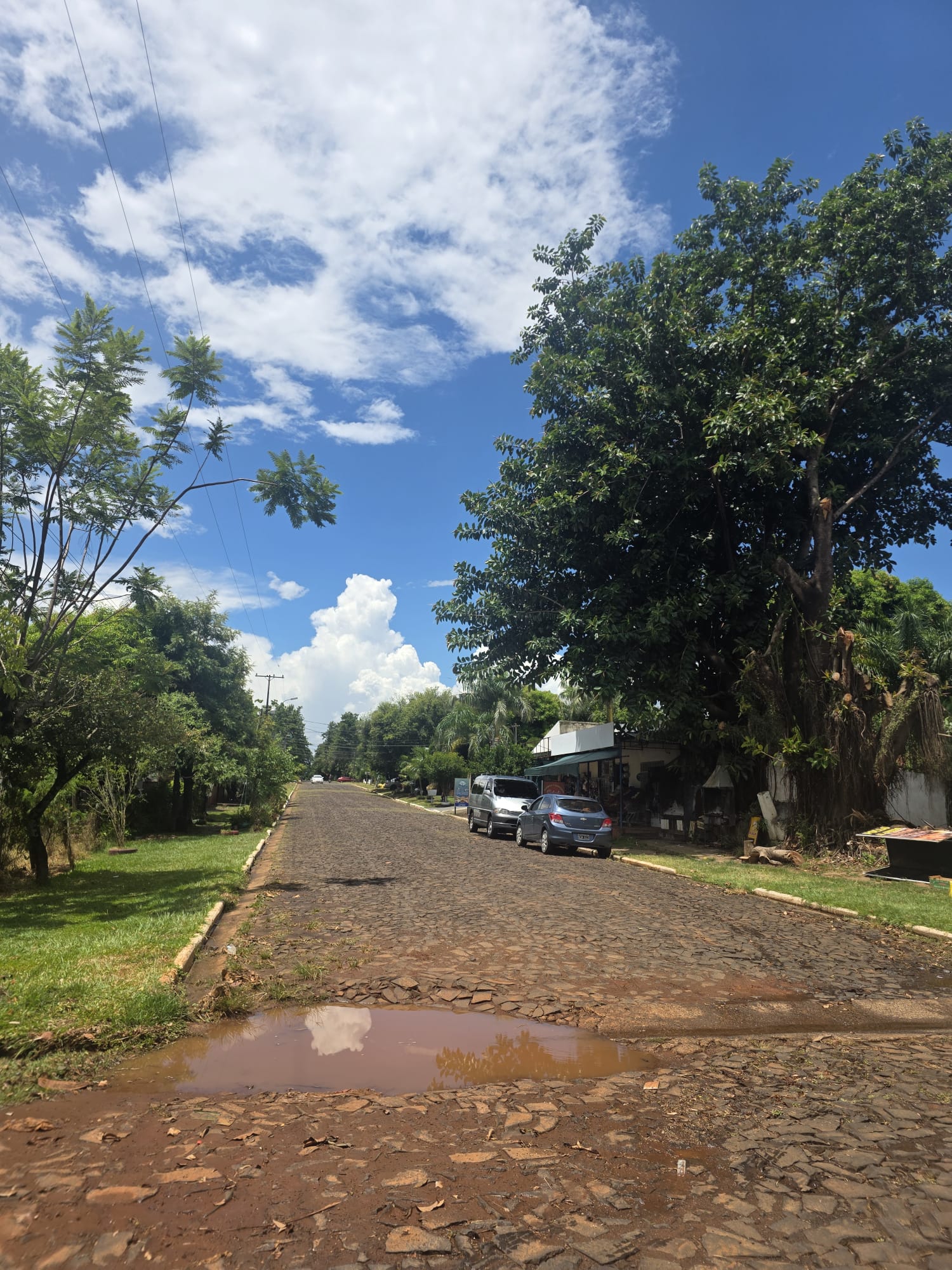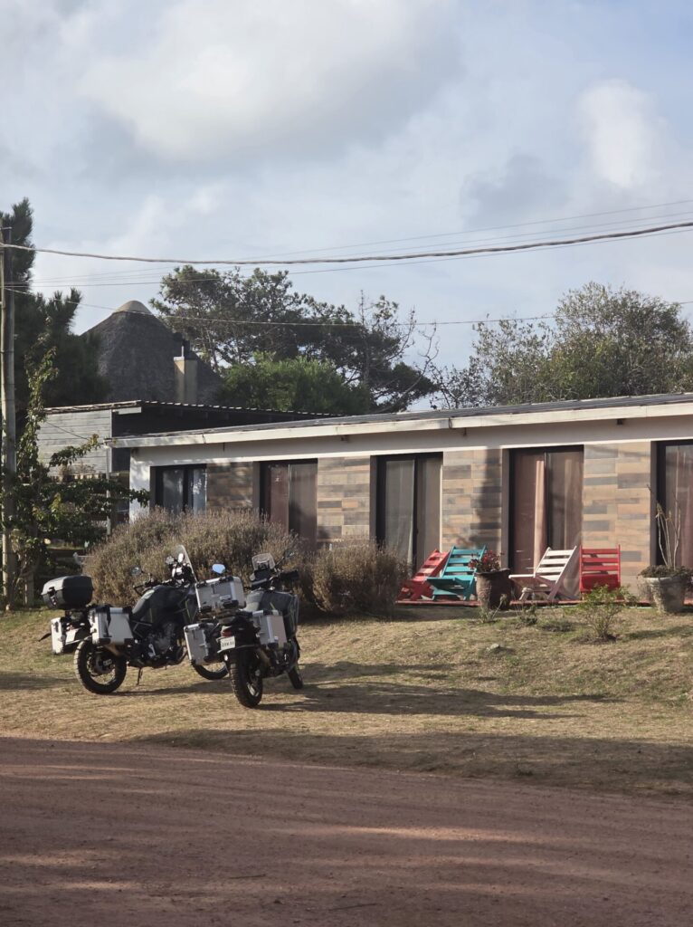 הבוקר צריך להחליט באיזה כיוון לעשות את הסיבוב של פרגואי. אין הרבה מקומות מומלצים, אבל אלו שיש דורשים נסיעה של כמה ימים, ואין ברירה אלא להחליט על מסלול תוך התחשבות במה עוד רוצים להספיק עד החזרה הביתה להפסקה.. בברזיל מקבלים ויזה לשלושה חודשים ונצטרך להשאיר את האופנועים לפני הכניסה, כמה שיותר קרוב לגבול ובקרבת שדה תעופה. קשה לתכנן! אנחנו נוסעים לעיר קטנה, קרובה מאד, לפי המלצה של אסי והדר. Carmen del parana. גדי שם מלון ליד הנהר במפה, רק לצורך כיוון כללי. פחות משעה ואנחנו שם. מתלבטים מה לעשות- בקושי צהריים. טיפה ענקית על הקסדה, ואחריה עוד אחת, ופתאום אנחנו בעיצומו של ארוע גשם שפותר את ההתלבטות… יש חדר פנוי, מחוץ לעיר הגדולה המחיר צונח, יש ווייפיי, אין ארוחות אבל יש מטבח לשימושנו. בשעה הקרובה נשב מתחת לגג עם שאר האורחים ופשוט נחכה לסוף המבול. כשהגשם נרגע אנחנו יוצאים לחפש מקום לאכול. העיר כמו בית קברות. אבל יש מינימרקט ואנחנו מצטיידים במשהו לבשל- בערב יהיו מקומות פתוחים כנראה.. החם כבד, וגרוע ממנו- הלחות. אנחנו ממש רטובים לגמרי!