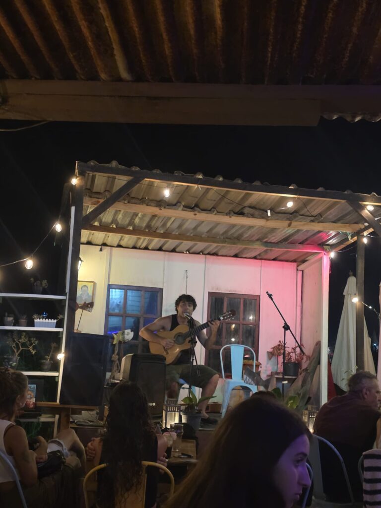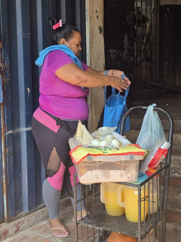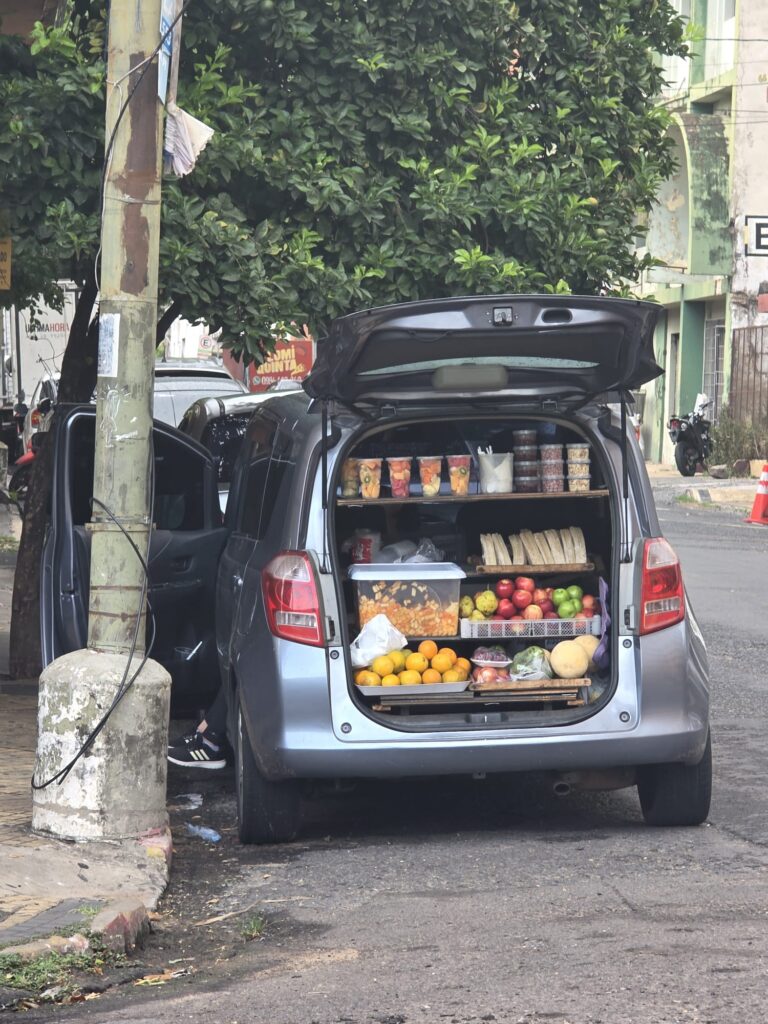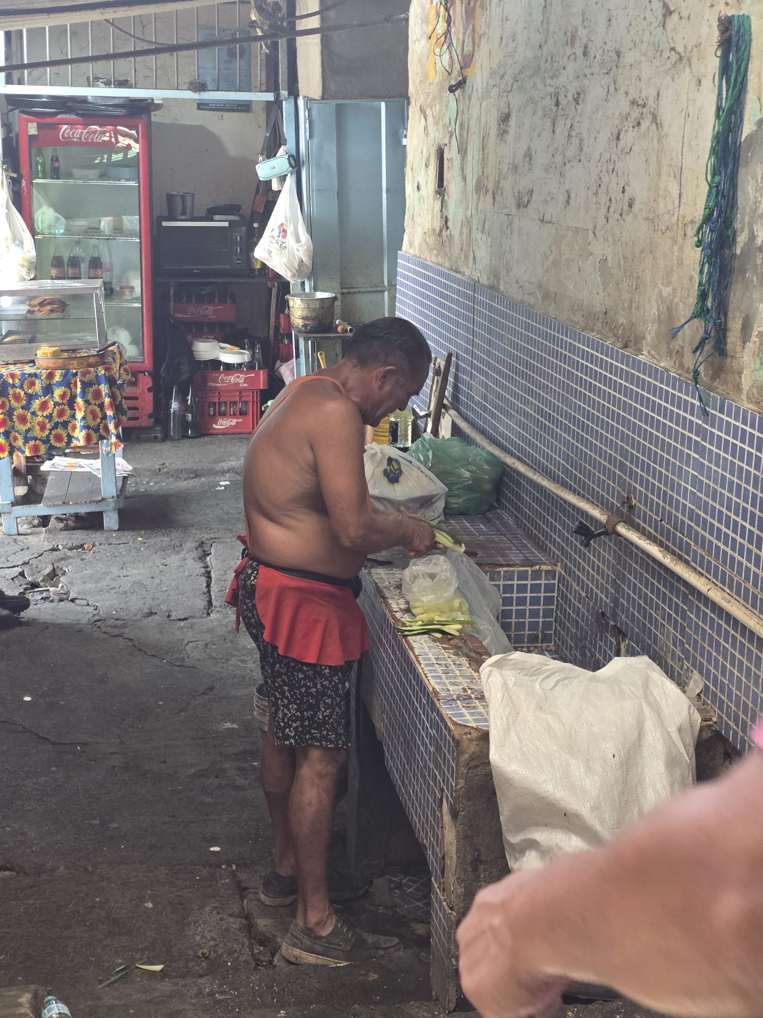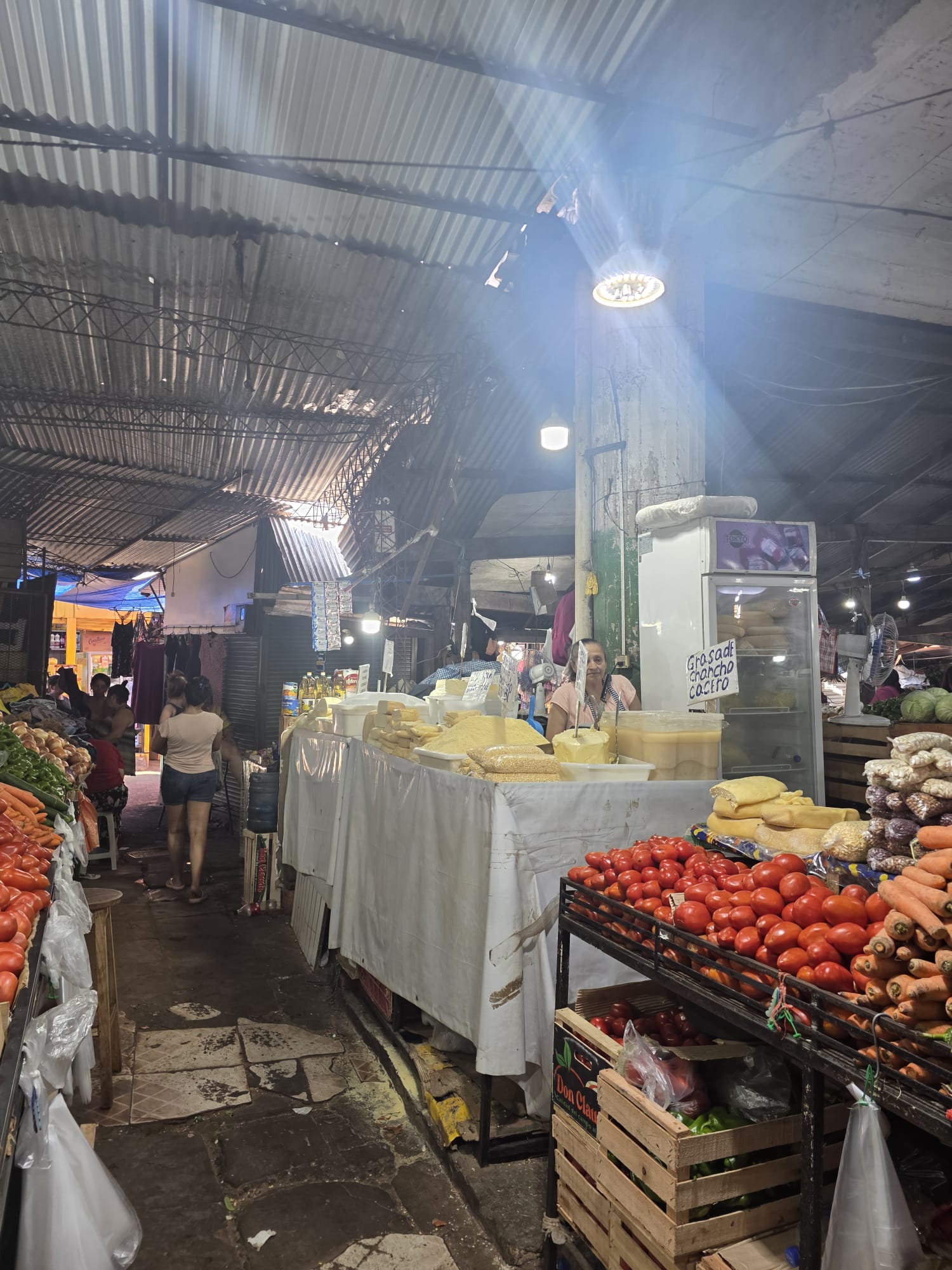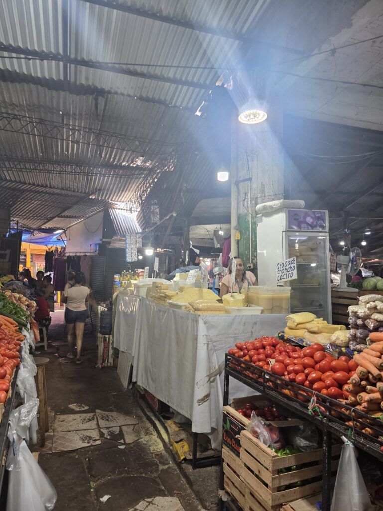 ארוחת ערב במלון- היום נשארים בטווח הליכה של 3 דקות מהחדר הממוזג- היה יום קשה אפילו לנו שלא מתרגשים מכלום… בבוקר יוצאים לקחת את האופנועים למוסך. נסיעה של 20 דקות ובתשע וחצי בבוקר זה עוד נסבל. הנהיגה כאן מזכירה את מקסיקו- צפוף וכולם נדחפים מכל הכיוונים. בכלל יש ניחוח מקסיקו בצבעים, בריחות, בברדק הכללי ברחוב. השפה אמנם ספרדית- אבל שונה משאר מדינות אמריקה הדרומית- הם בולעים אותיות והוגים קצת אחרת מה שלפעמים מקשה להבין, אבל הם אדיבים וחייכנים ושמחים לפתוח בשיחה. נחמד פה. מזג האויר הצפוי לימים הקרובים- חם. היום למשל, 42 מעלות עם הרגשה של 48. אנחנו כבר בחוץ, אז מנצלים את הבוקר לביקור במרקדו 4. שוק שמומלץ לבקר בו, דומה למקומות אחרים שראינו במרכז אמריקה ובאפריקה. מבנה ענק עם חנויות, איזורים שונים של בגדים, חפצי נוי, דברים לבית, ירקות ופירות, דגים, בשר, וכמובן מקומות לאכול. שרות המזון שלנו היה חוטף התקף לב מלהסתובב פה…