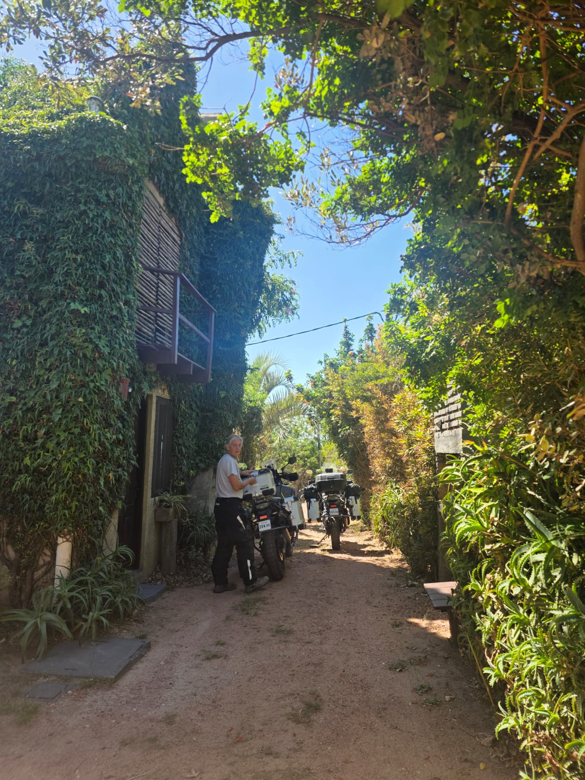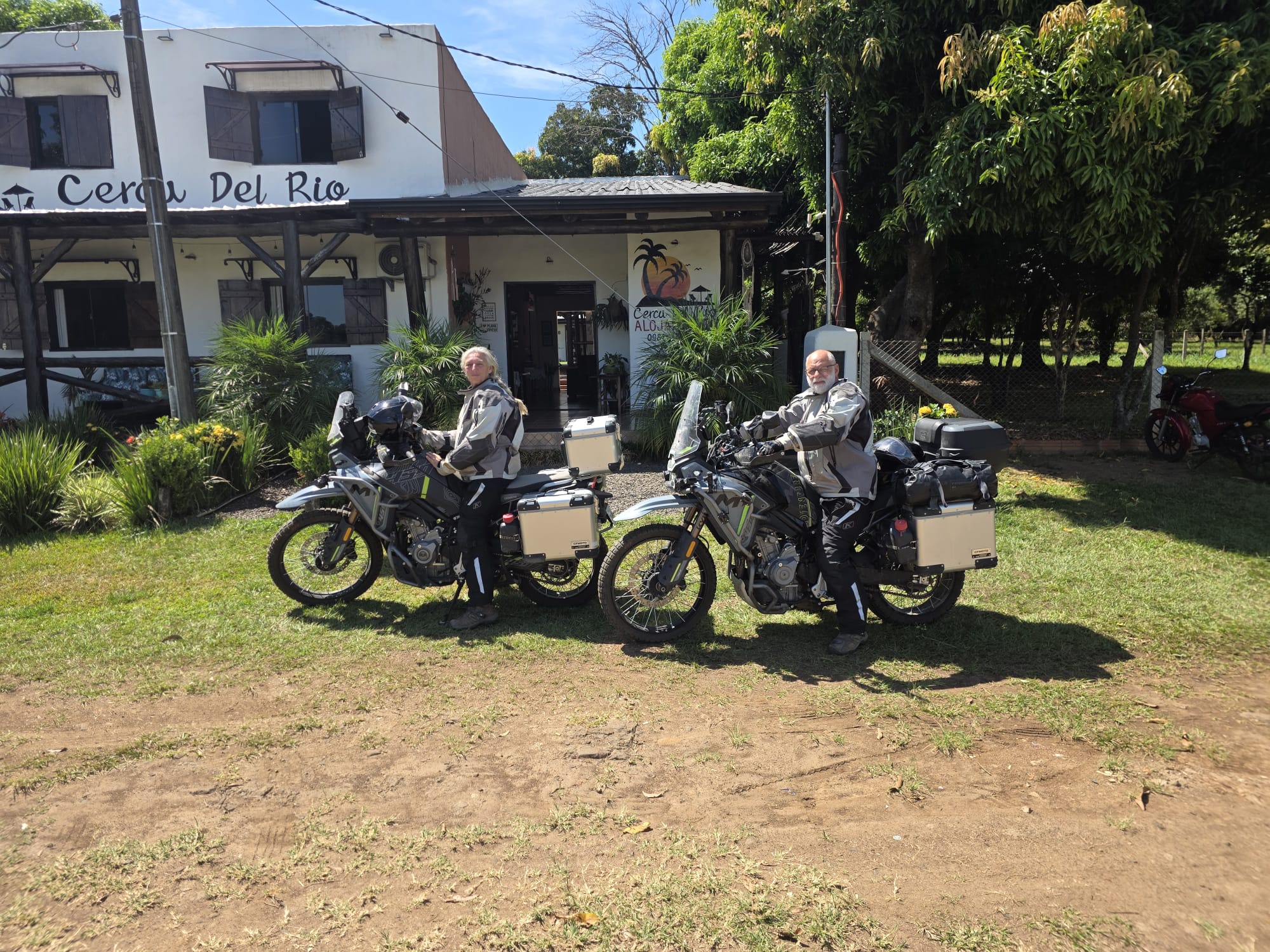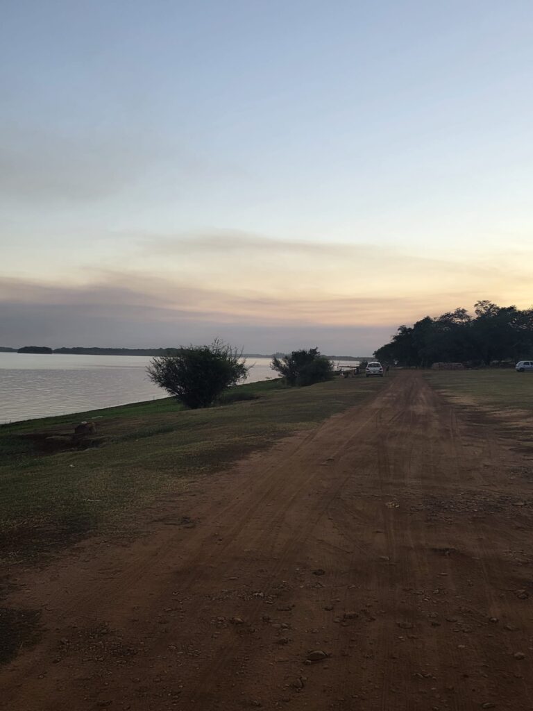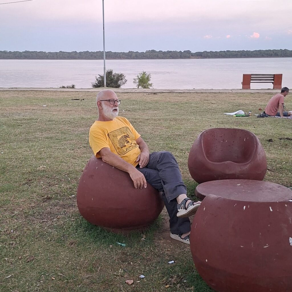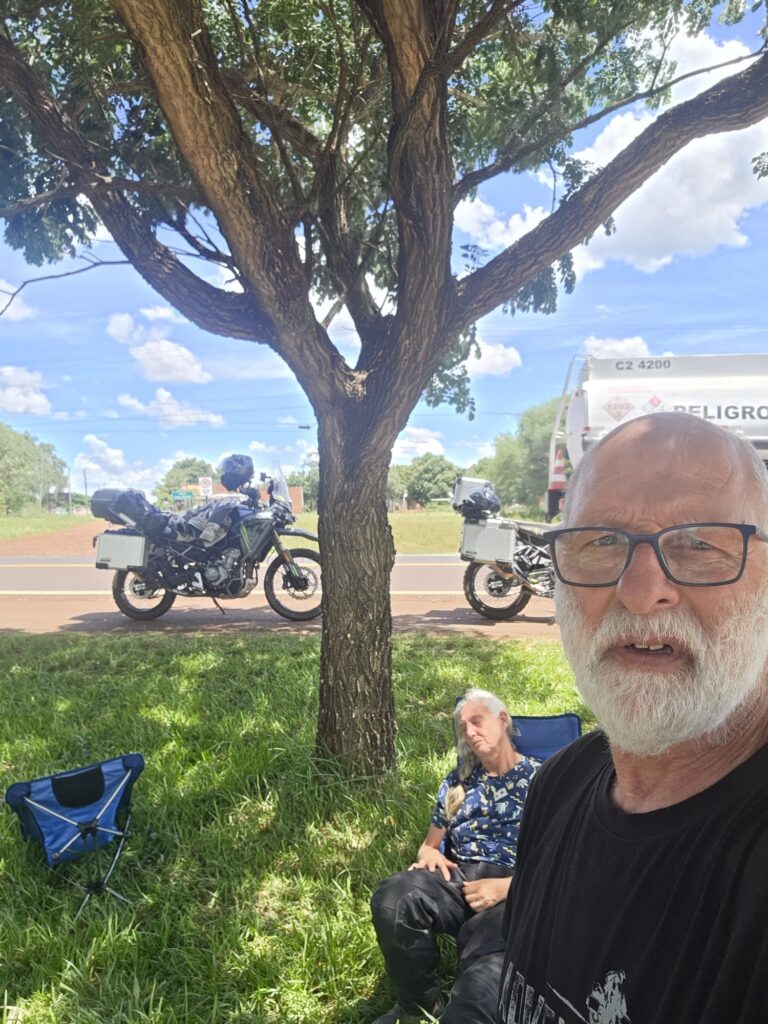 אחרי שאכלנו (שניצל בלחמניה ובירה קרה) עולים על בגדי ים ויורדים לחוף הנהר. מחיה נפשות! הנהר רדוד, ואחרי 50 מטר עדיין המים לא מגיעים לברכיים. אנחנו רובצים במים הנעימים- הקרקעית חול ממש כמו בים- כיף גדול. את ארוחת הערב אנחנו אוכלים במקום היחיד שפתוח- יש רק פיצה והמבורגר, פותחים לנו את המכולת הצמודה שנבחר יין. אותנטי מאד… בשולחן לידינו חבורה מברזיל, ויש גם בחור צ'כי שבקושי מדבר ספרדית אבל כשהוא שומע שאבא שלי נולד בצ'כוסלובקיה הוא בא לספר לנו שסבא שלו היה קומוניסט והרג גרמנים. היה לו ממש חשוב להעביר את המסר. בחזרה לחדרנו במלון- המקום חמוד ביותר, וניכר שמי שבנה אותו היה עם ראש טוב. חוץ מאיתנו נמצאים פה זוג מבוגר מאסונסיון והבת שלהם עם החבר. מנהלים שיחה על מה קורה היום במדינה- הם מרוצים- כנראה שצודקים.. יש מספיק כסף לבשר, בירה ונופש- לא צריך יותר בחיים. בבוקר אנחנו מחליטים להמשיך לאסונסיון למרות המקום החמוד- התבטלנו מספיק בשבועות האחרונים. 2 האופנועים צריכים מוסך- שלי הגיע ל 5000 ק"מ, של גדי עשה טיפול חלקי בלבד וצריך להשלים טיפול 10000. יש לפנינו 320 ק"מ, 5 וחצי שעות רכיבה. ?? הכבישים אמנם צרים- רק נתיב אחד לכל כיוון, אבל הם טובים למדי, והכל אספלט. עוד נגלה בהמשך. בינתיים אנחנו נהנים מהדרך- הירוק כאן ירוק מאד, וחם מאד. שעתיים וחצי עברנו חצי דרך, עוצרים כל חצי שעה לשתות ולהרגע במזגן- גדי בטוח שנקבל מכת חום אם לא נעצור. החליפות רטובות, הקסדה מגעילה וגם הכפפות נצמדות לידיים. אם צריך היה להגדיר את פרגואי במילה אחת זה היה- רטוב. או שאתה טובל בנהר, או שיורד גשם, או שאתה מזיע בטירוף. ההרגשה היא שגם העיניים מזיעות. הטמפרטורה סביב 40 מעלות, גם הבוקר והערב לא נעימים, והלחות איומה.