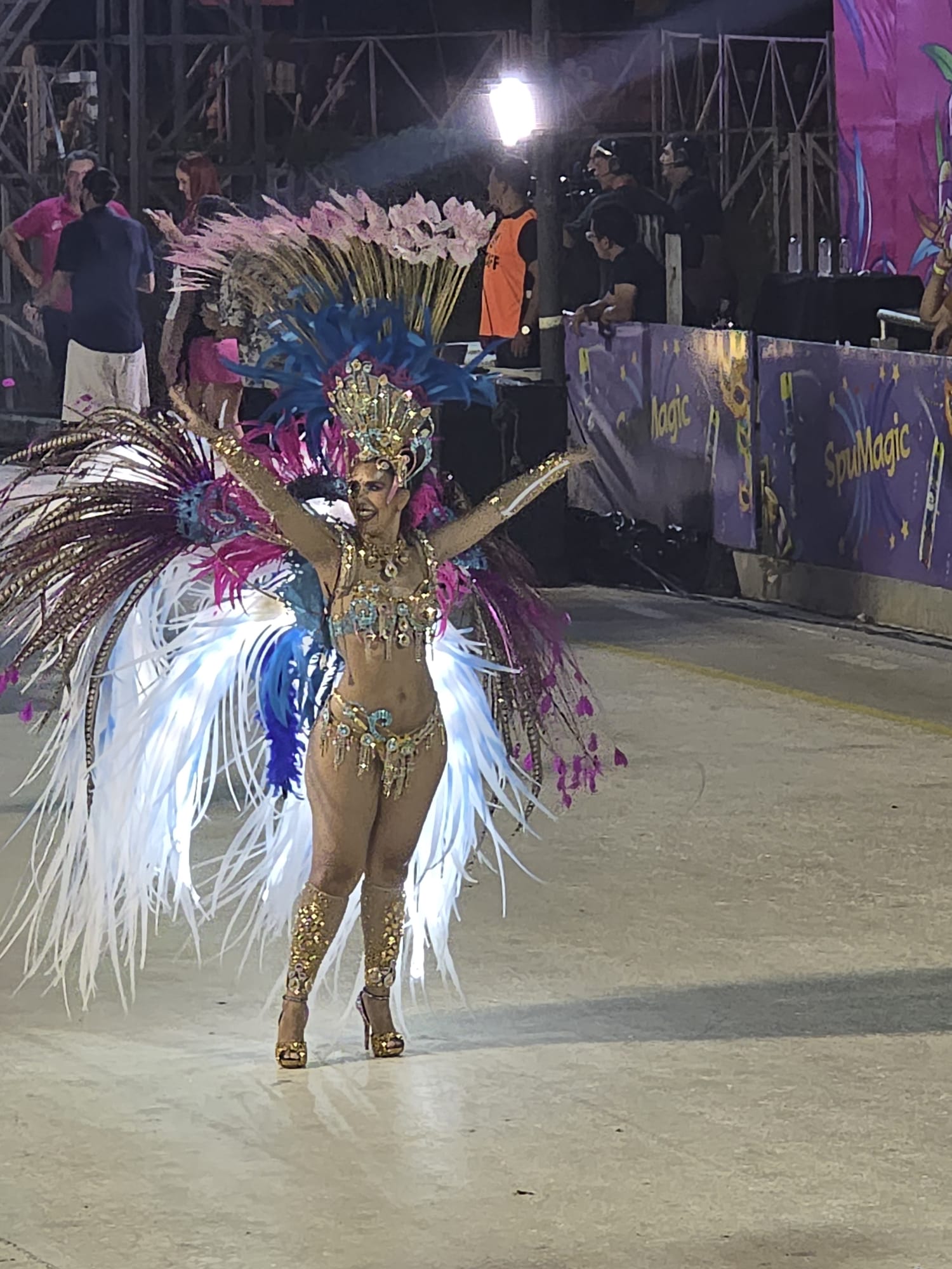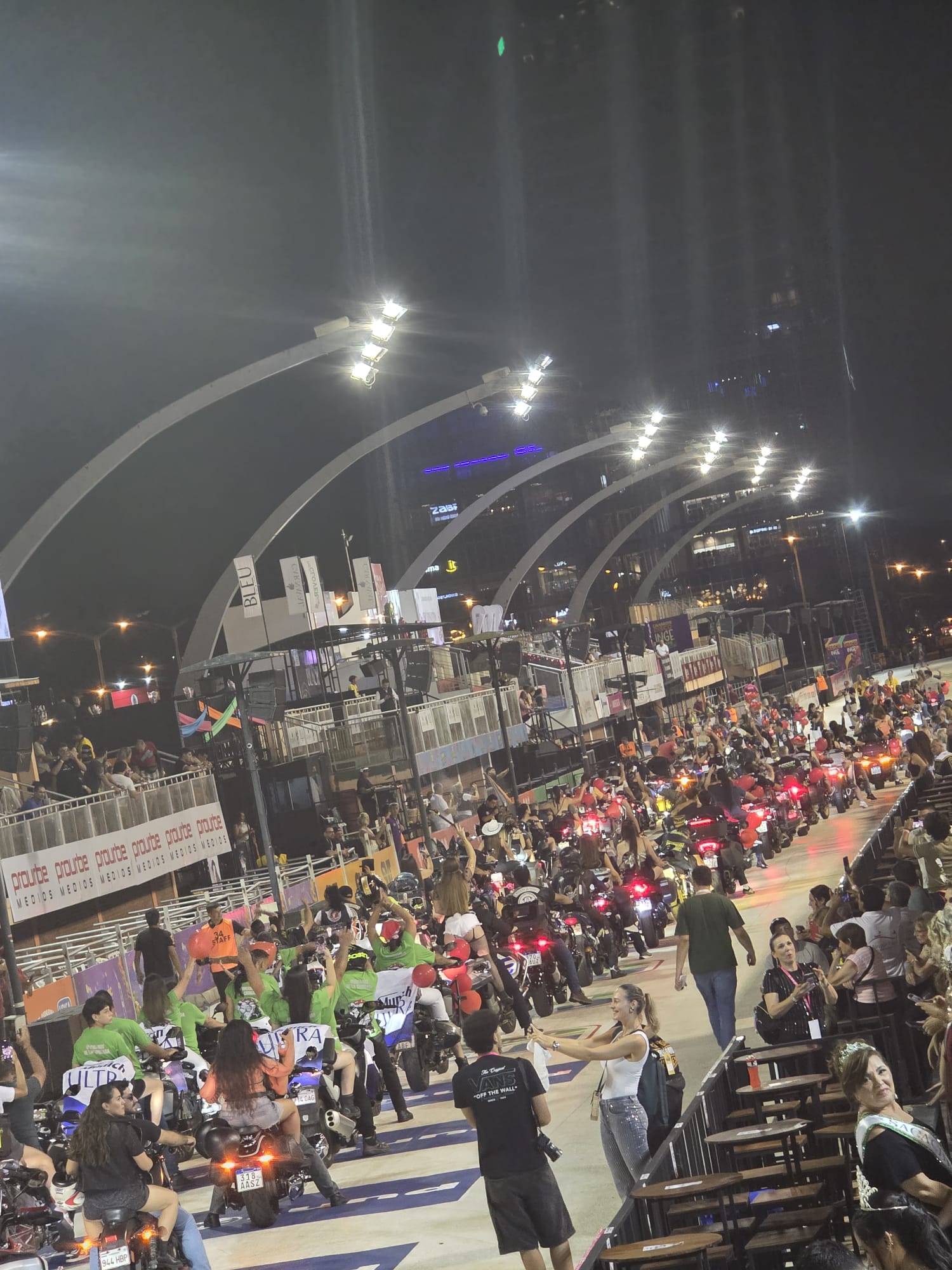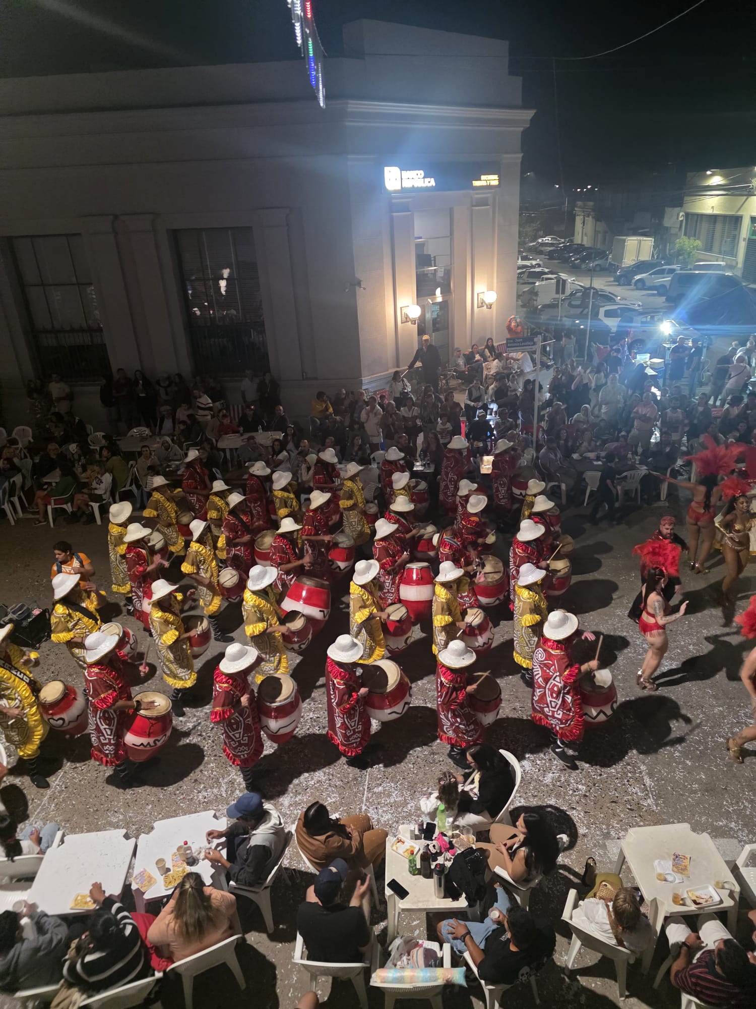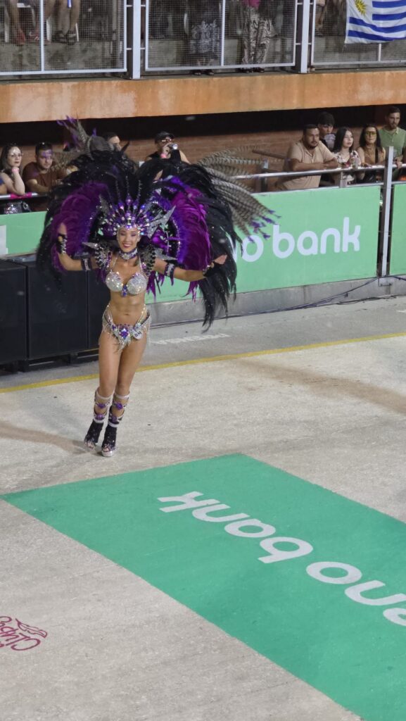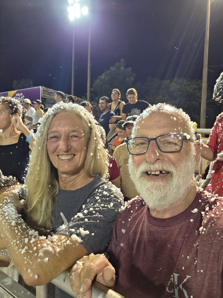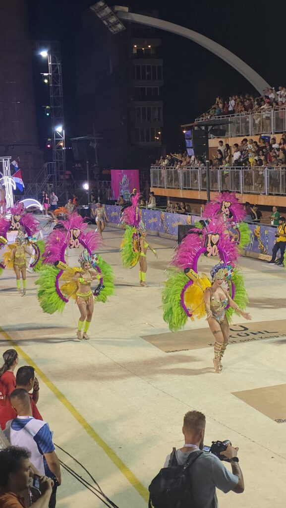 שבת. העיר מפוצצת באורחים. גם קיץ, גם ולנטיין, גם מסיבת הקרנבל האחרונה השנה. רב האנשים מקומיים, אבל יש גם ארגנטינאים, ברזילאים, ושומעים פה ושם גרמנית או אנגלית. לפרגואי אין ים, ותיירות החופים מתרכזת לאורך הנהר- אנקרנסיון נחשבת לבירת התיירות הזו, ולאורך החוף המוני מסעדות. ארוחת הצהריים שלנו היא טעימה ממאכל מקומי- מין בצק אפוי מקמח מנדיוקה עם מילוי. כבד. טעים. ממלא מאד. שיטוט קצר להבין מה יש באזור- מוזיאון קטן וחביב במה שפעם היה תחנת רכבת עם הסבר על הרכבת שפעם פעלה מפה לארגנטינה ולעיר הבירה אסונסיון. חוץ מזה, לא מצאנו משהו מעניין. החברים החדשים של גדי מזמינים אותנו להצטרף בערב- כל האופנועים נכנסים בשיירה שפותחת את אירועי הערב. אני מוותרת וגדי לא רוצה לבד. נראה אותם ממקומנו בקהל. החגיגה אמורה להתחיל בשעה שמונה, אבל אנחנו כבר למודי נסיון, נכנסים חצי שעה אחרי, והמקום די ריק- הקהל מתחיל להגיע אפילו מאוחר יותר. האופנוענים נכנסים לקול תרועות הכרוז ומעט הקהל, ואז מתחיל טקס ארוך להחריד. השנה הקרנבל המקומי מציין 100 שנים, וכל מלכות העבר מכל המועדונים מוזמנות לקבל תעודה. כולן בתלבושות מתאימות, רשימה ארוכה- גדי אומר שכבר שנתיים אנחנו עומדים ושומעים שמות- אבל כאן זה סתם ארוך ומייגע. כמעט שעה וחצי, וסוף סוף מתחילים לעבור המועדונים השונים. התלבושות מרשימות, הרקדנים והרקדניות נותנים הופעה מרשימה, המוזיקה מחרישת אזניים, וכולם בקהל מרססים באוויר ספריי שלג בשמחה רבה. בחצות אנחנו מחליטים לפרוש- עוד יש שורה ארוכה של קבוצות שמחכות לתורן אבל הספיק לנו.. בדרך החוצה עוברים בין הדוכנים של האוכל ובוחרים שיפודי אסאדו טעימים. שתיה יש רק בירה או שתיה קלה מתוקה. נסתפק בבקבוק יין לחירום שיש לנו באופנוע.