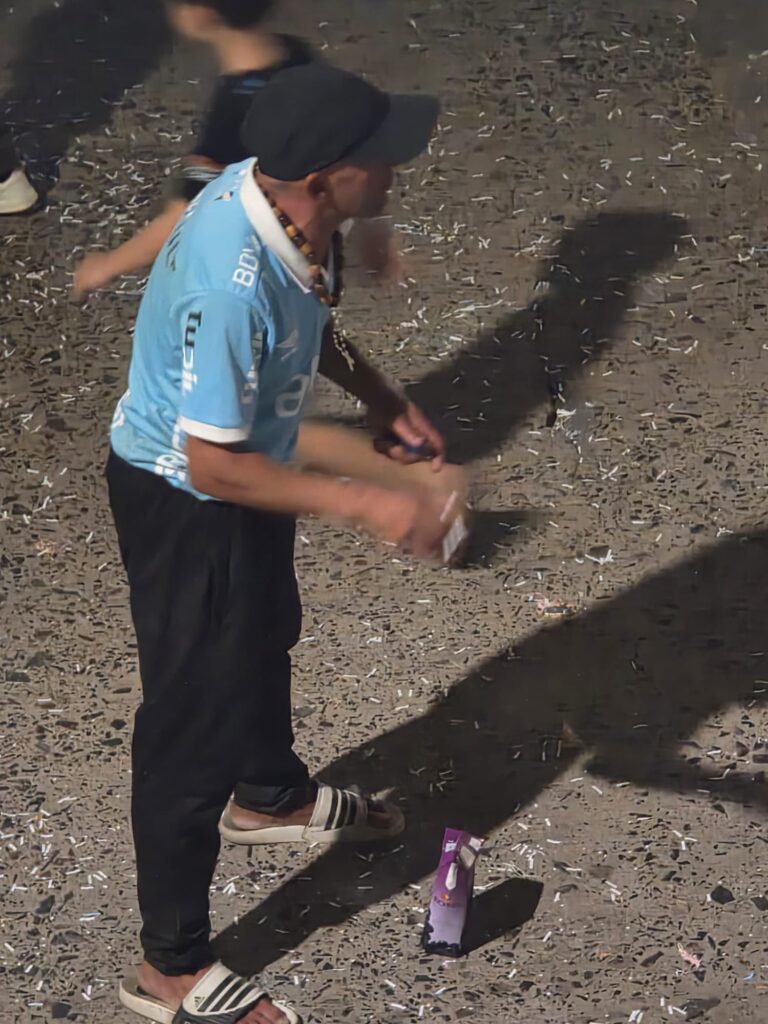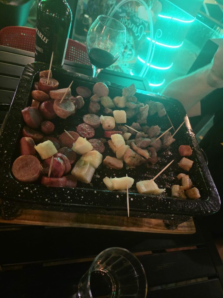 בבוקר מאוחר אנחנו מחליטים ללכת למרכז העיר- הפלסה דה ארמס. העיר כמו בית קברות- ריק ושקט. ממש מקום נטוש.. פתאום יש המון רעש ברחוב- הולכים לראות ומיד מבינים שצריך להתחבא. חבורות של צעירים ונוער במכוניות וטנדרים זורקים אחד על השני ועל עוברי האורח המעטים פצצות מים וקצף, וכולם מאושרים עד הגג… אנחנו מוצאים מקלט במקום היחיד הפתוח- גלידריה. השיטה- אכול ככל יכולתך. האטרקציה- גלידה אסאי. לוקחים כוס או מיכל, עוברים וממלאים איזה גלידה שרוצים וכמה שרוצים, מוסיפים פירות, דגנים, סירופ, ובסוף שמים על המשקל. המחיר לפי המשקל, וכמו כל האוכל- זול בטירוף… גדי מתאפק- הוא יכול לאכול קילו בלי בעיה, אבל הבטן שמתחילה ללכת לפניו מגבילה את החשק. עד הערב אנחנו מסודרים. ארוחת ערב במסעדה של המלון- מנה לשניים עם תערובת בשר וצ'וריסו. בלתי אפשרי לאכול הכל. השאריות בתמונה.