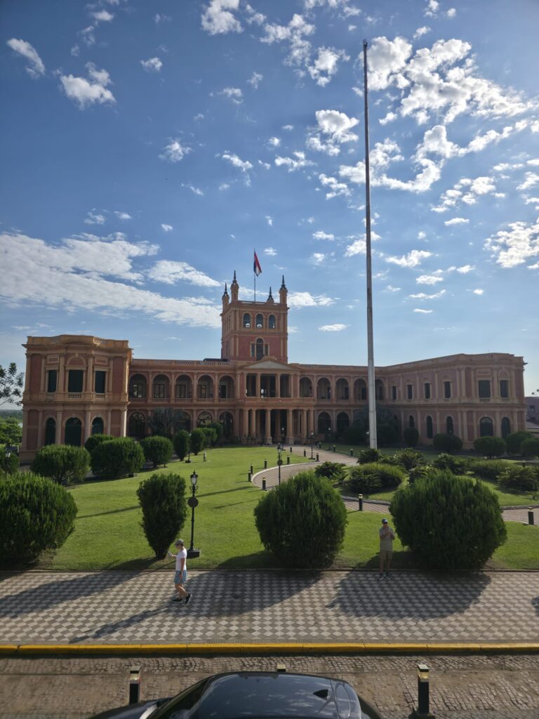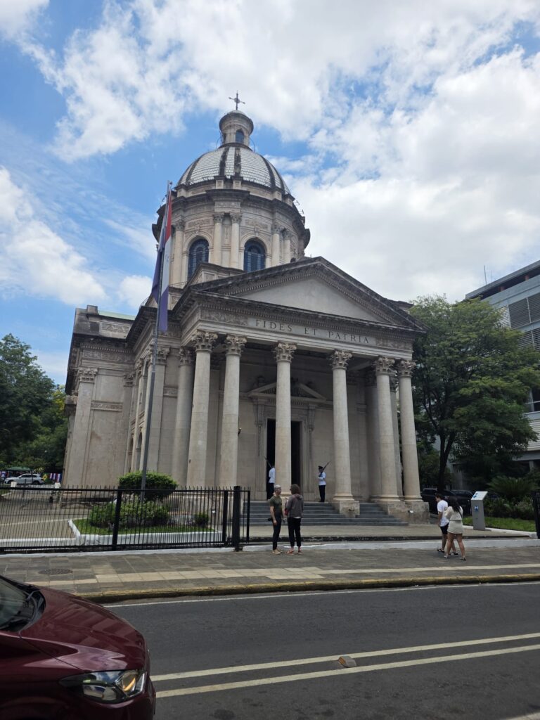 אחרי שעתיים אנחנו חוזרים למלון. הגשם מזמן פסק ועכשו אפילו נעים בחוץ. אם לא עומדים בשמש.. שישי בבוקר נפגשים עם ויקטור המדריך ועוד 3 זוגות- מצ'ילה, ספרד ורומניה. הסיור דו לשוני כי הרומנים לא ממש מבינים ספרדית, ויקטור אלוף בדיבור כפול- ממש מרב מיכאלי… עוברים במקומות החשובים- בית הנשיא, הפנתאון, מוזיאון העצמאות. למזלנו מזג האויר השתפר, ועדיין כשנכנסים למקום לא ממוזג אפשר להחנק. ויקטור מסביר על הולדת פרגואי, הדיקטטור הראשון ויורשיו שהובילו את המדינה למלחמה המשולשת- נגד אורוגוואי , ברזיל וארגנטינה. במלחמה הזו פרגואי איבדה שטחים עצומים שנכבשו ע"י שכנותיה, ובעיקר איבדה את רב הגברים שלה. המלחמה עם בוליביה שנולדה כתוצאה מהרעיון שבערבות הצ'אקו יש נפט, מה שגרם לכלכלה הרוסה וללא נפט. הוא מספר גם על הכלכלה המקומית ושיטת המיסוי שמושכת אנשים לעבור לגור כאן. עוברים לתקופה היותר מודרנית- פרק הדיקטטורה הארוכה ביותר באמריקה הלטינית. סטרסנר, איש צבא ממוצא גרמני לקח את השלטון, כנראה בתמיכה אמריקאית תוך העלמת עין מכל הפרות זכויות האדם. לזכותו נזקף הסכר באיטאיפו שהוא השני בגודלו בעולם ומספק את כל החשמל שהמדינה צריכה. גם כלכלת המדינה היתה כנראה יציבה בתקופתו. מנגד- פעולות אלימות מול מתנגדי משטר, שימוש בהלשנות שכמובן גרם לחוסר אמון מוחלט באוכלוסיה- בקיצור- לא ממש אהבו אותו.. בשנת 1989 האיש ברח לברזיל, וכאות הערכה לקחו פסל גדול שלו, שברו ועשו ממנו פסל חדש שמוצב בכיכר הנעדרים ליד בית הנשיא. אגב- שרידי רב הנעדרים נמצאו גם אחרי הרבה שנים, יש כ 400 שלא יימצאו אלא אם הנהרות הגדולים יתייבשו פעם…